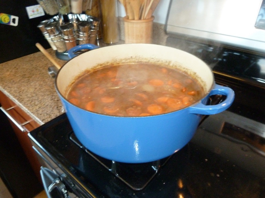 - Se agrega la cebolla y los dientes de ajo bien picaditos, si los morrones son frescos (no congelados) se agregan aquí para freírlos también, cortados en rajas.