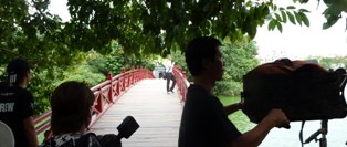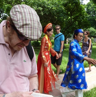 La primera etapa, evidentemente empieza por la inmensa estatua del tío Ho que facilmente mide 5 metros sobre un pedestal de 1 metro. Aquí hay fotógrafos acreditados que sacan fotos a familias enteras que posan bajo la mano salutaria de Ho.
